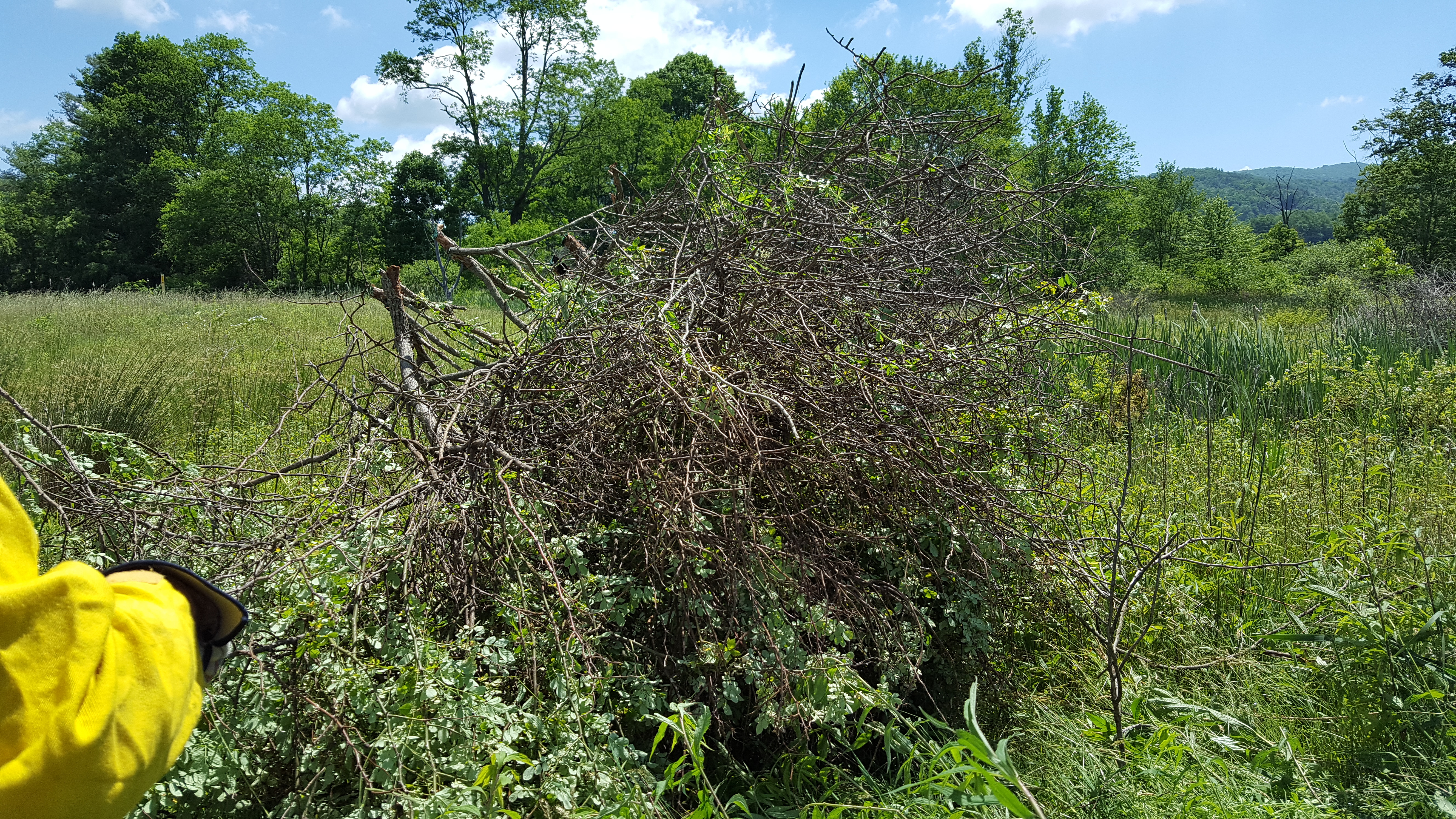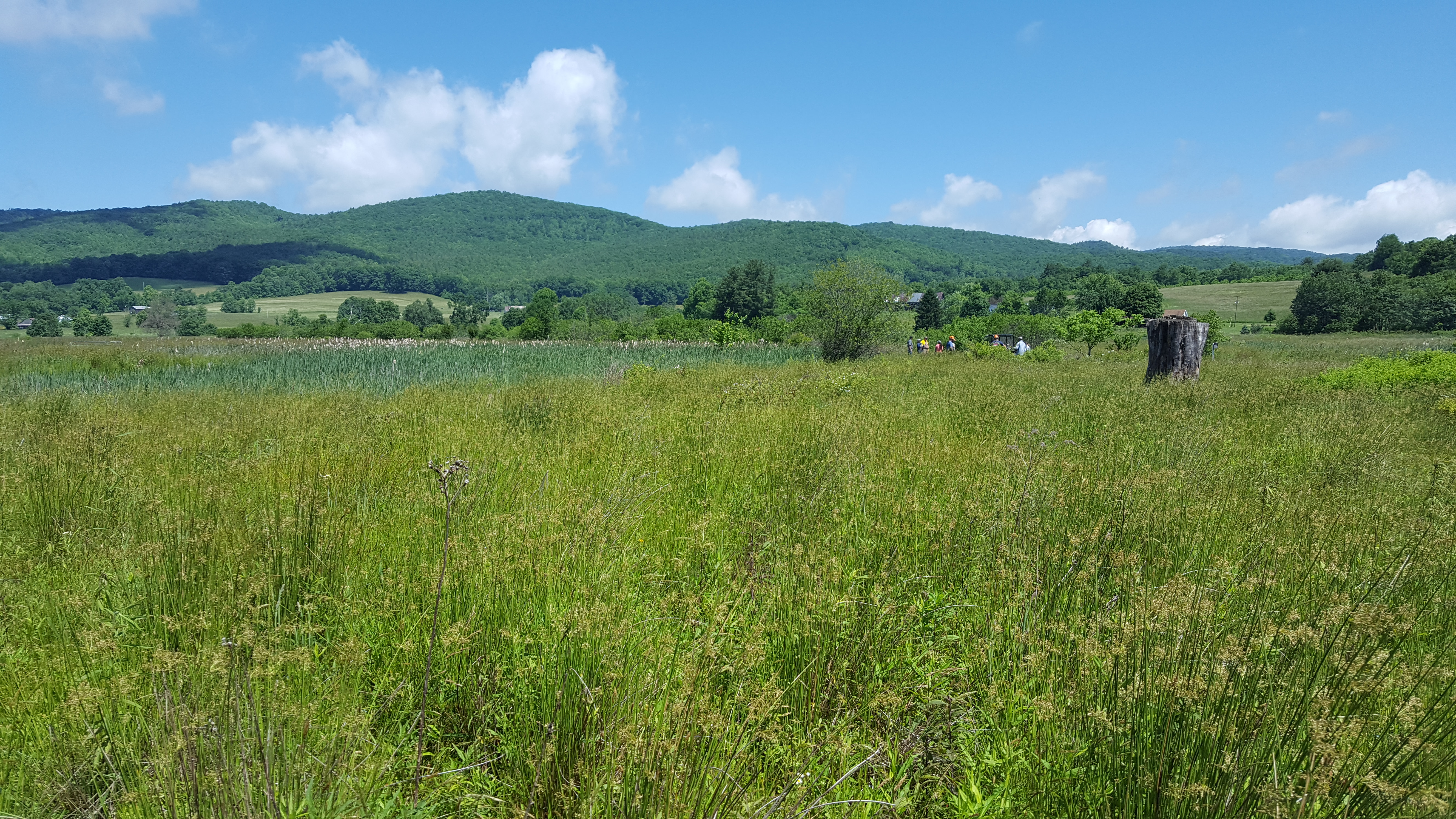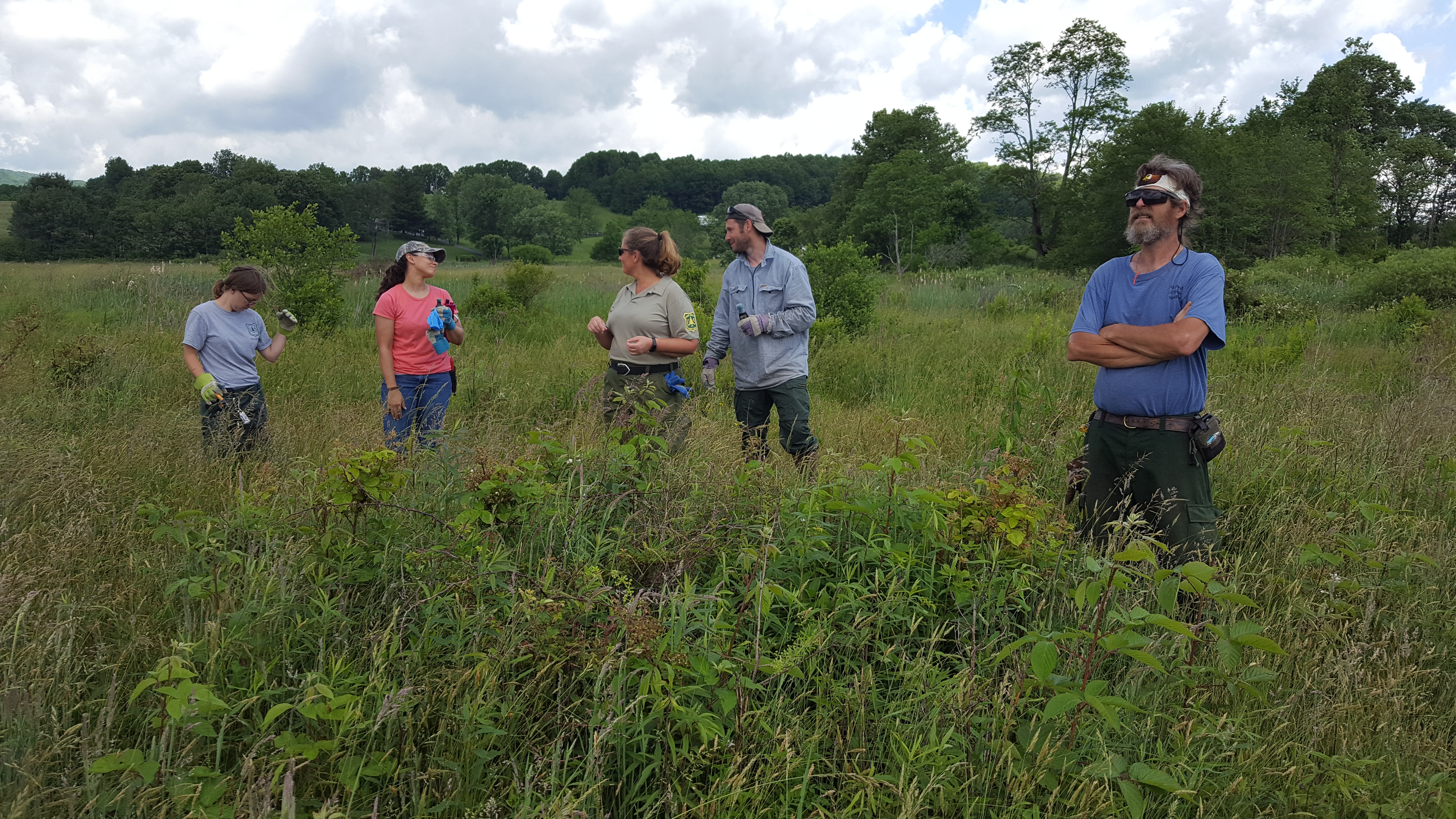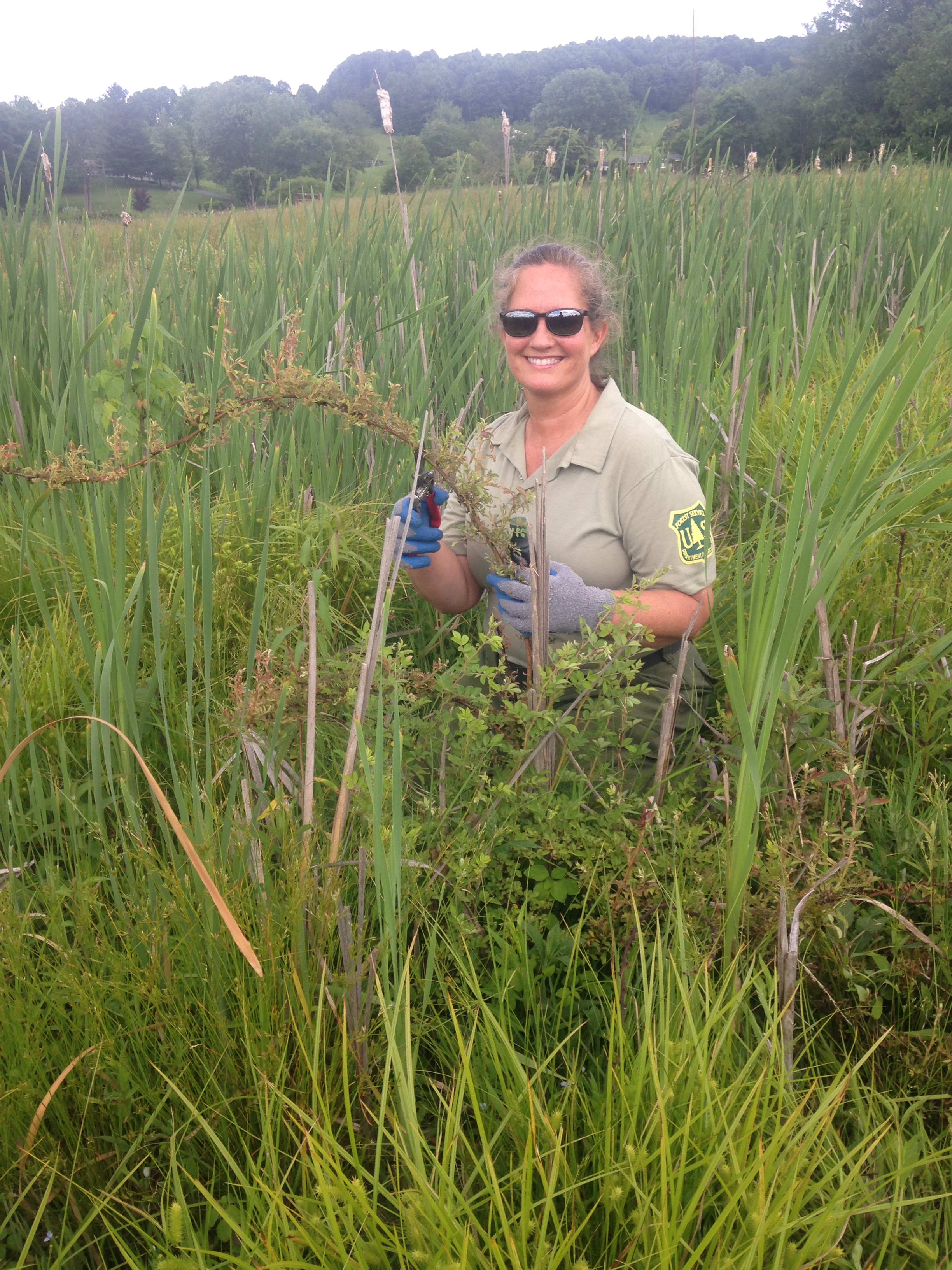 On June 7, 2016, The Nature Conservancy’s Tennessee Chapter hosted a Bog Learning Network invasives field day at Quarry Bog Preserve, Shady Valley, Tennessee. Quarry Bog Preserve is a 68-acre site where TNC began a large-scale hydrologic restoration project in the early 2000s. The BLN work day drew 14 participants from Zoo Knoxville, the Natural Resources Conservation Service, MountainTrue, U.S. Forest Service/Cherokee National Forest, and local TNC staff. The invasive species targeted for the day, Multiflora rose, occurs sporadically across Quarry Bog Preserve; TNC staff have spent years attacking it with foliar glyphosate applications, with only mixed results. MountainTrue staffer Lauren Reker came armed with Garlon 3A herbicide and taught the group efficient tips on how to best eradicate this very nasty and unwanted species. The group put a huge dent in Quarry Bog Preserve’s Multiflora rose population, and a fun day was had by all. Thanks to Lauren Reker for the photos.